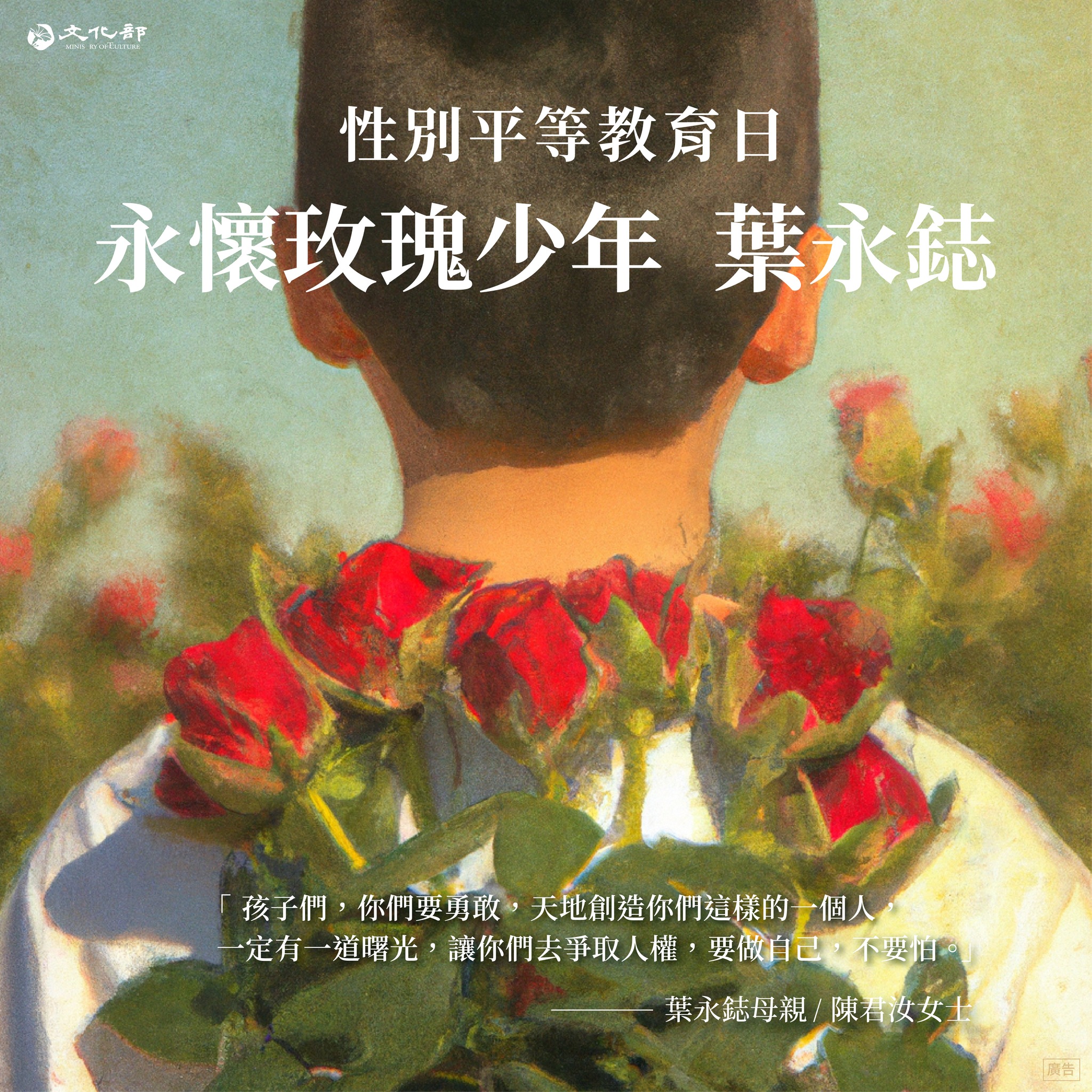 1.為了紀念2000年4月20日發生的「葉永鋕事件」,事件引發了社會對性別平等教育的重視,並促成了《性別平等教育法》的制定。訂定性別平等教育日,旨在提醒各級學校和社會大眾,重視性別平等教育,並在校園中建立性別友善的環境。